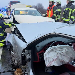 Dabei wurde dessen Fahrzeuglenkerin schwer verletzt im Fahrzeug eingeklemmt und mussten im Anschluss durch den nachalarmierten Rüstzug der Feuerwehr aus dem Fahrzeug befreit werden. Insgesamt wurden drei Personen verletzt, darunter ein Kind. An der Einsatzstelle waren neben den Kräften der Feuerwehr drei Rettungswagen des hauptamtlichen Rettungsdienstes, sowie ein Notarzt und die Polizei eingesetzt. Bei einem der Fahrzeuge traten durch den starken Aufprall derart große Mengen Kraftstoff aus, dass die Brückenböschung im Anschluss abgesaugt und ausgebaggert werden musste, um einen Umweltschaden zu vermeiden.