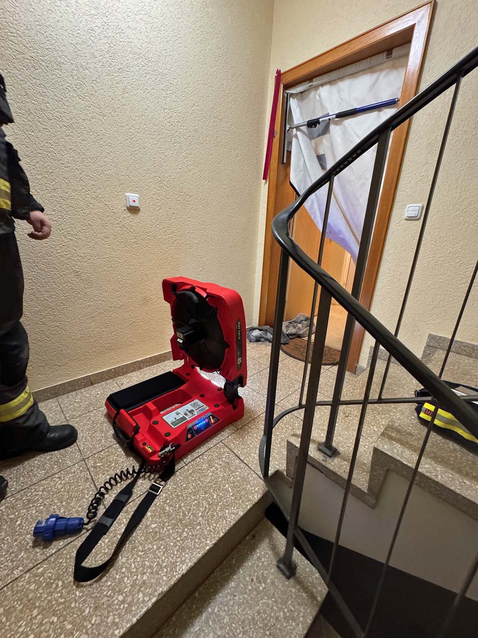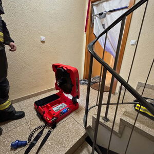 Mittels Türöffnungswerkzeug verschafften sich die Kräfte Zutritt zu einer Wohneinheit und konnten eine Person aus der verrauchten Wohnung retten. Sie wurde an den nachalarmierten Rettungsdienst übergeben und konnte nach ambulanter Behandlung auf eigenen Wunsch vor Ort verbleiben.