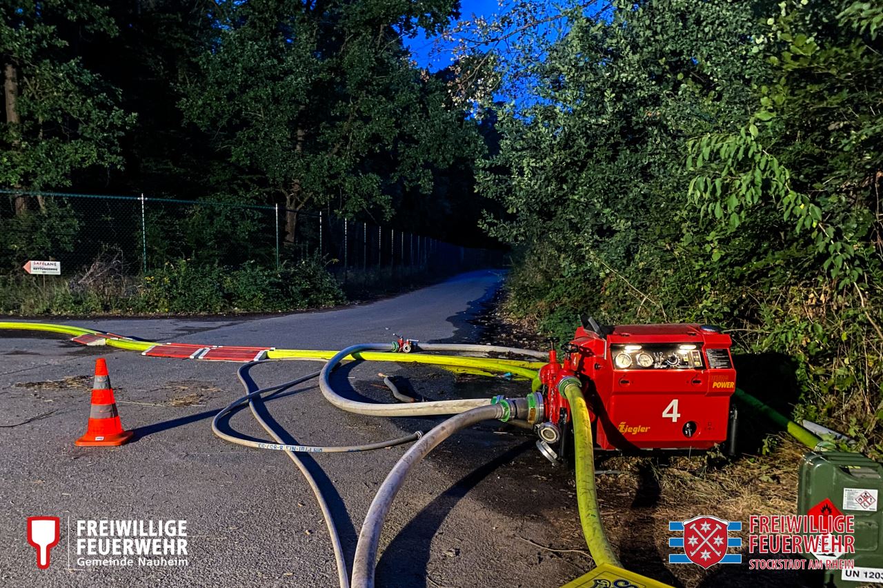 Die Aufgaben der Einsatzkräfte bestand hauptsächlich darin, die Wasserversorgung aufrecht zu erhalten. Dabei wurden mehrere Pumpen und etwa 5 km Schlauchstrecke bis in die frühen Morgenstunden betreut. Während dieser Zeit musste die Schlauchstrecke immer wieder kontrolliert werden und defekte Schläuche ausgetauscht werden. Noch in der Nacht musste eine weitere Pumpe in Betrieb genommen werden, um die Löschwasserversorgung aufrecht zu erhalten. Die Strecke wurde dabei in zwei Abschnitte aufgeteilt. Einen Abschnitt übernahm die Feuerwehr Nauheim den anderen die Feuerwehr Stockstadt.