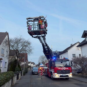 Um 12:03 Uhr erfolgte dann die dritte Alarmierung zur Menschenrettung in die Otto-Hahn-Straße. Hier musste eine Patientin nach Behandlung durch den Notarzt aus einem ausgebauten Spitzboden über eine steile Treppe mittels Schleifkorb gerettet werden. Wir waren mit drei Fahrzeugen und 9 Mann vor Ort und brachten die Patientin erschütterungsfrei und schonend in den Rettungswagen.