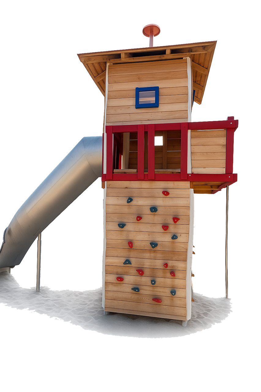 Der Feuerwehrturm ist das Herzstück für kleine Kletterfans: Wer traut sich nach ganz oben? Von dort geht’s schwungvoll die Rutsche hinunter, weiter zum nächsten Einsatz. Dabei werden Mut, Geschick und Gleichgewicht ganz spielerisch gefördert. Mit Leitern, Rutsche und Ausblick über den gesamten Spielplatz wird er zum richtigen Abenteuer.