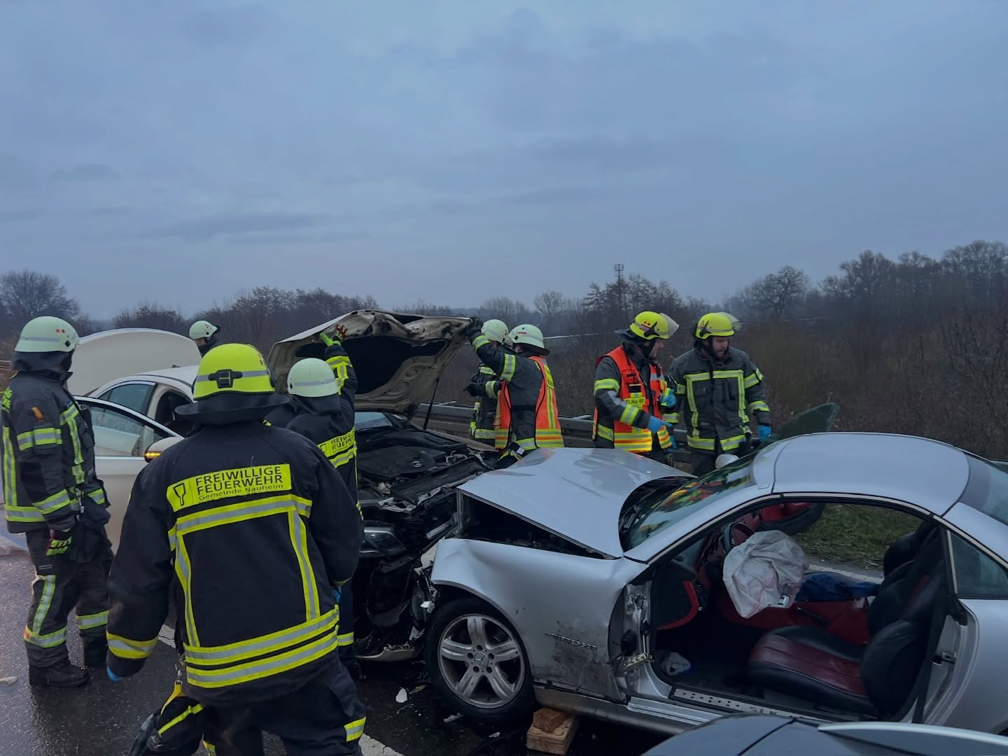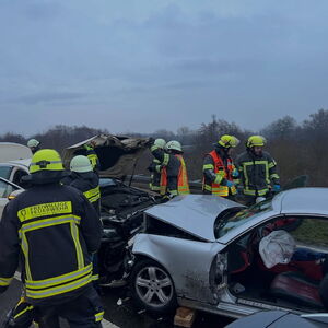 Dabei wurde dessen Fahrzeuglenkerin schwer verletzt im Fahrzeug eingeklemmt und mussten im Anschluss durch den nachalarmierten Rüstzug der Feuerwehr aus dem Fahrzeug befreit werden. Insgesamt wurden drei Personen verletzt, darunter ein Kind. An der Einsatzstelle waren neben den Kräften der Feuerwehr drei Rettungswagen des hauptamtlichen Rettungsdienstes, sowie ein Notarzt und die Polizei eingesetzt. Bei einem der Fahrzeuge traten durch den starken Aufprall derart große Mengen Kraftstoff aus, dass die Brückenböschung im Anschluss abgesaugt und ausgebaggert werden musste, um einen Umweltschaden zu vermeiden.