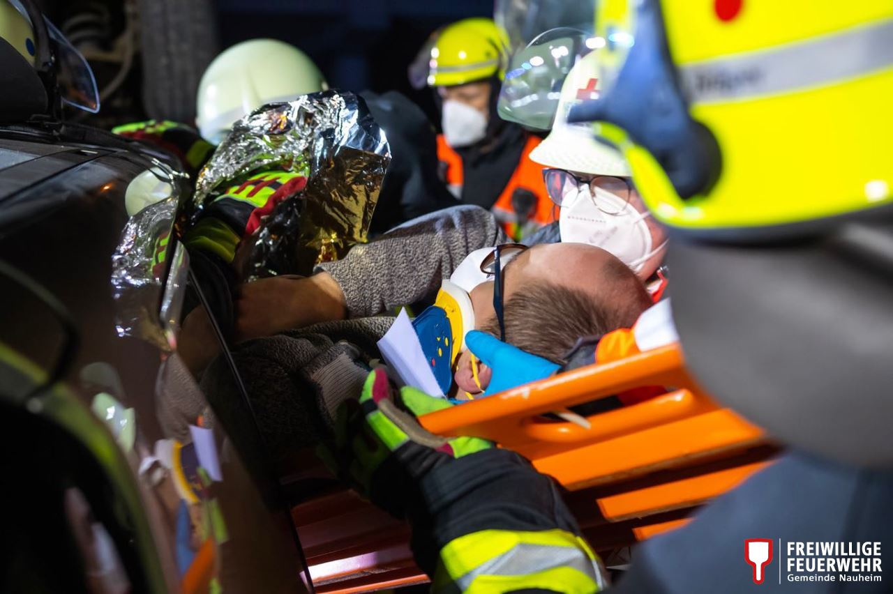 Dieses Szenario bot sich den Helfern von DRK Nauheim, DRK Trebur, DRK Rüsselsheim, Malteser Hilfsdienst Rüsselsheim und Veritas Ambulanz am gestrigen Donnerstagabend im Rahmen einer gemeinsamen Übung mit der Feuerwehr Nauheim. Ziel der Übung war die Kommunikation zwischen den Fachdiensten und die gemeinsame Rettung und Versorgung aller Patienten.