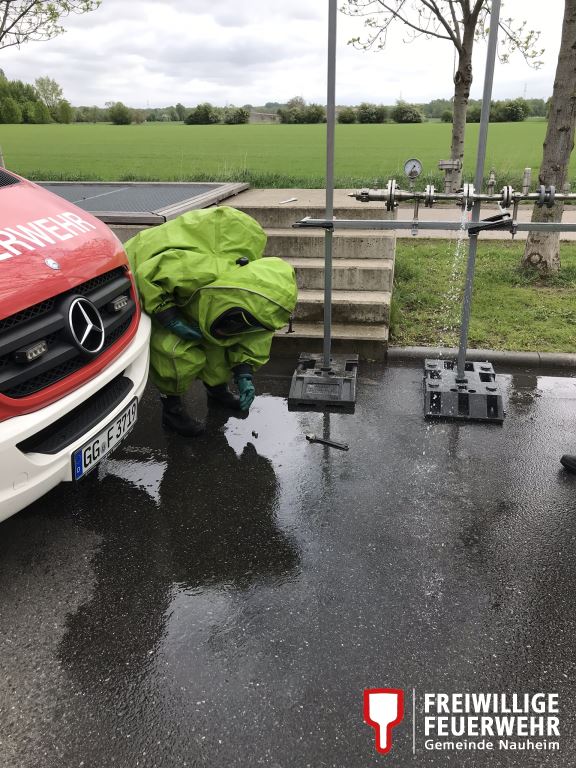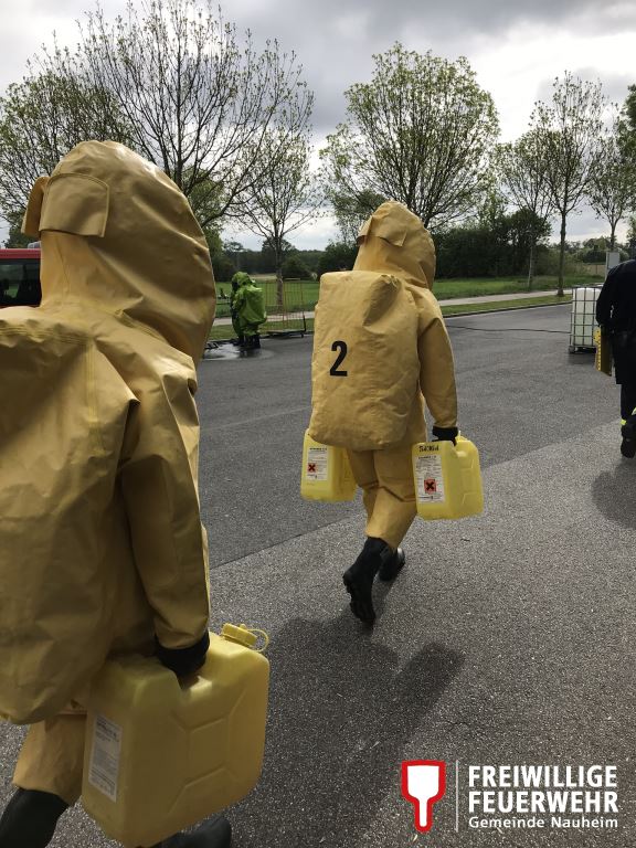 Vor einigen Jahren wurde diese Ausbildung vom Kreis Groß Gerau an die einzelnen Kommunen zur Durchführung in Eigenregie übertragen. Der gemeinsame Lehrgang der vier Kommunen wurde erstmals im Jahr 2015 mit 9 Lehrgangsteilnehmern am Standort Raunheim durchgeführt. In diesem Jahr wurden erstmals 19 Lehrgangsteilnehmer in zwei Praxisgruppen vom gemeinsamen Ausbilderteam geschult. Neben einem theoretischen Unterrichtsteil wurden verschiedene Gewöhnungsübungen durchgeführt, in denen die Teilnehmer Stück für Stück an das Tragen eines solchen Chemikalienschutzanzuges (CSA) herangeführt wurden. Im theoretischen Teil werden Grundlagen vermittelt, wie zum Beispiel die Anforderungen an den einzelnen CSA-Träger, die jeweiligen Körperschutzformen, die Schutzwirkungen, die Einsatzmöglichkeiten und die Einsatzgrundsätze. In der praktischen Ausbildungseinheit wurden mehrere kleine Übungen durchlaufen, die die Lehrgangsteilnehmer an das Arbeiten unter CSA und die damit verbundene Belastung heranführt.