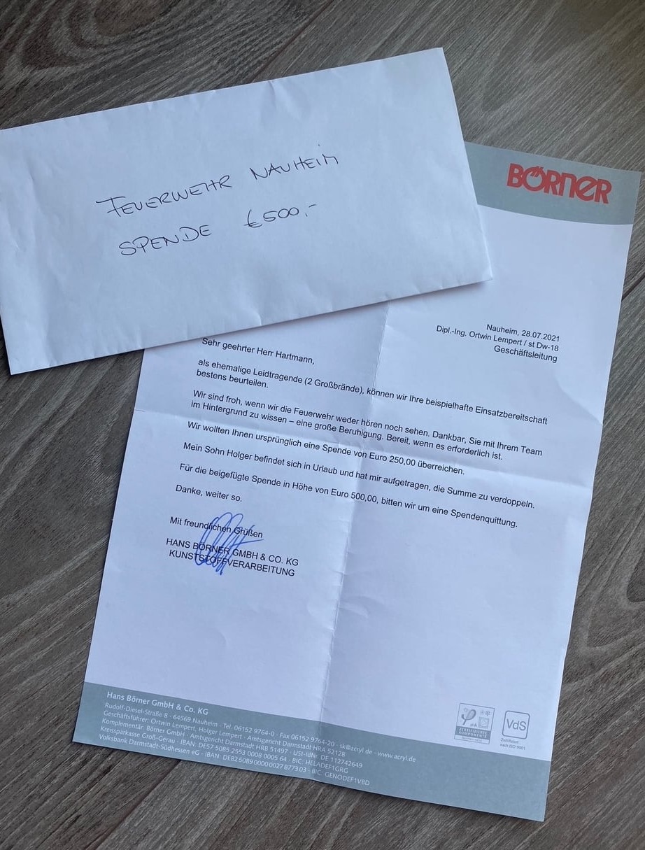 Dennoch haben wir im vergangenen Jahr mehrere tausend Euro in die Förderung des lokalen Brandschutzes investiert - unter anderem konnte ein Rollcontainer "Hygiene & Atemschutz" in Dienst gestellt werden, der Wechselkleidung für Einsatzkräfte enthält und die Möglichkeit bietet, verunreinigte Atemschutzgeräte an der Einsatzstelle zu tauschen und fachgerecht zu lagern und transportieren. Diese und viele weitere Dinge sind spendenfinanziert und kommen allen Nauheimerinnen und Nauheimern, sowie auf Wunsch auch den Bürgerinnen und Bürgern im Umland zu Gute!